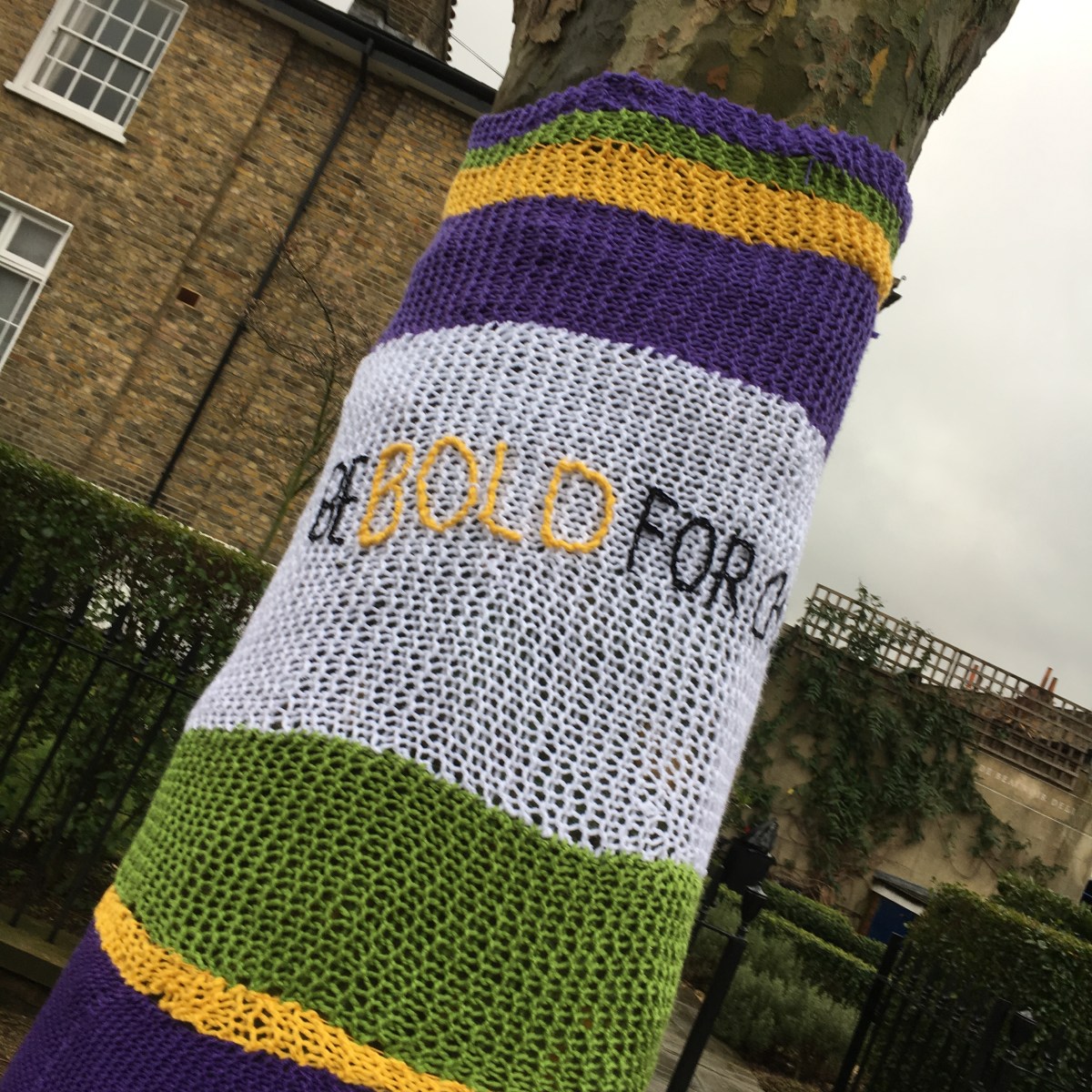 Yarnbombing around De Beauvoir