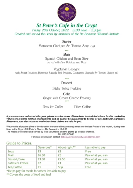Food is a wonderful community bonding activity so this coming Saturday the 13th, between 1pm and 3pm, we are holding a community meal in association with the Jo Cox Foundation’s Great Winter Get Together. This will be at the De Beauvoir Block, where we are now holding the monthly meeting (details on the home page of the website). This event is open to everyone – members, non-members, families. We will be serving up soup and bread and sandwiches, and providing conversation, friendship, and board games.