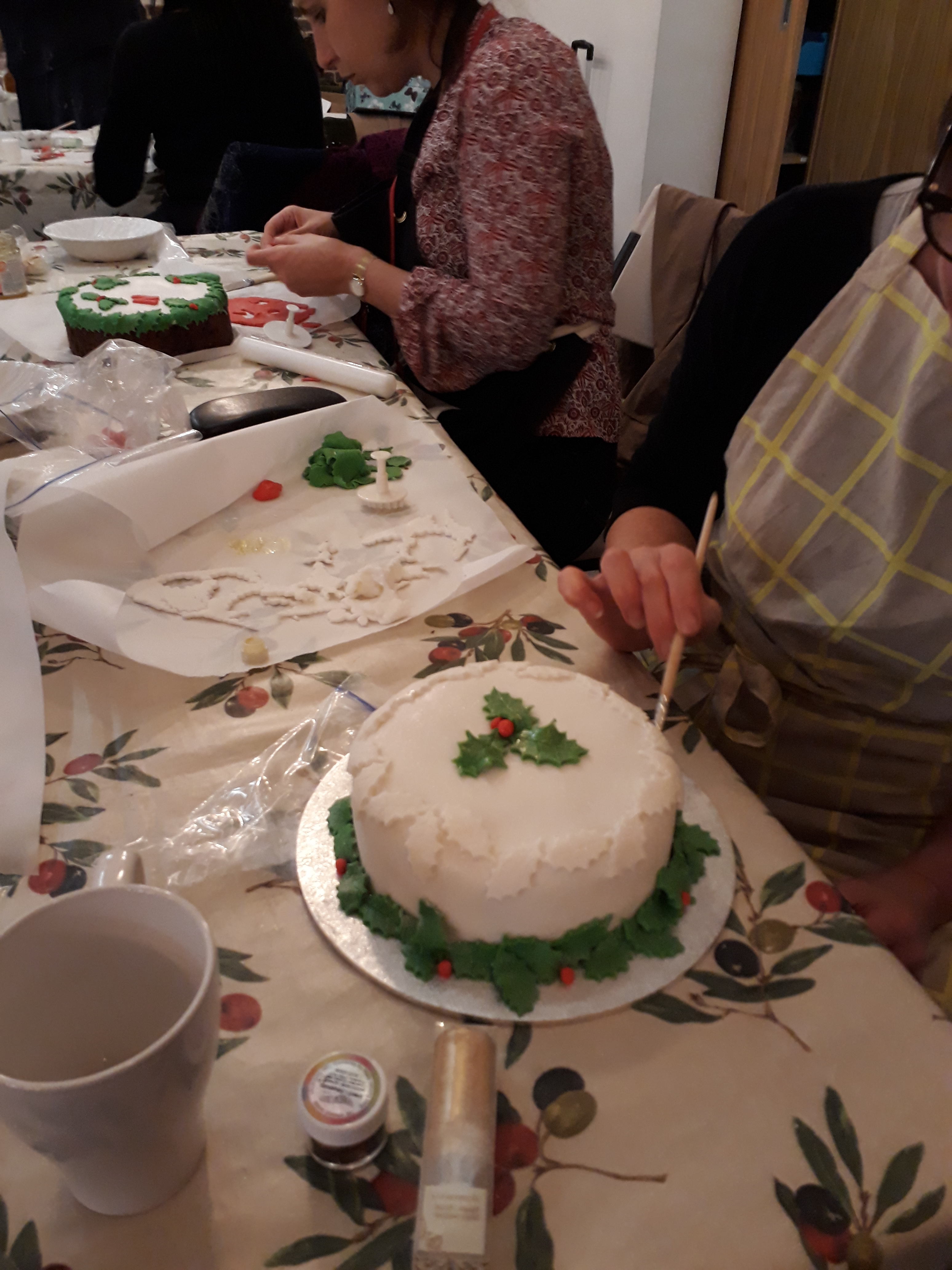 From pretty in pink through the night before Christmas and all manner of festive fondant foliage inbetween, we rolled, crimped and decorated a whole host of Christmas cakes at our December meeting. Icing sugar flying while we indulged in a seasonal glass of wine and munched on mince pies, a wonderful array of completely individual cakes exited the building at the end of the night.